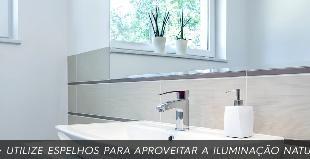 A iluminação natural é importante em todos os cômodos da casa. Mas no banheiro pode fazer diferença até na sua autoestima. Colocando um espelho de frente para a janela, você terá a sensação de amplitude de espaço e quando se olhar no espelho durante o dia, verá sua pele mais iluminada. Um ótimo jeito de começar uma mudança, certo?