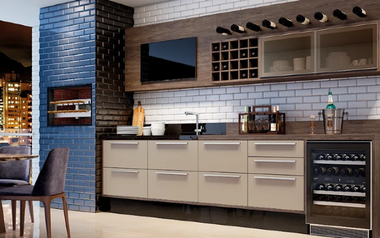 Já pensou em montar um bar na sua varanda? Ou colocar uma mesa para as refeições, ou mesmo pufes para relaxar? A varanda gourmet pode ser o espaço descontraído na sua casa, perfeito para receber os amigos e aproveitar a vista do seu apartamento, por exemplo. Esse local pode ser integrada com qualquer ambiente e oferecer um espaço aconchegante ideal para confraternizações.