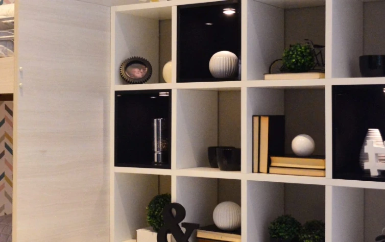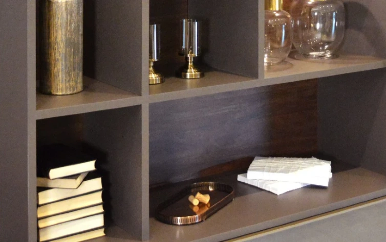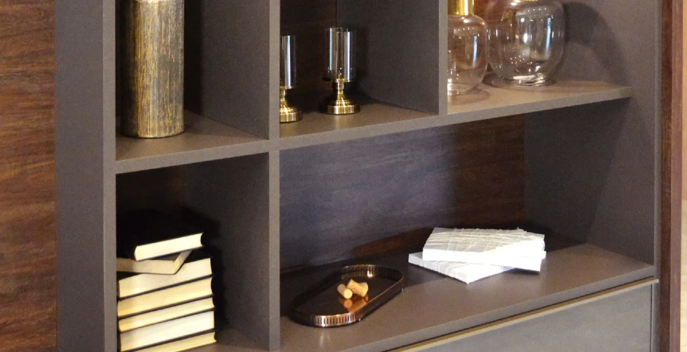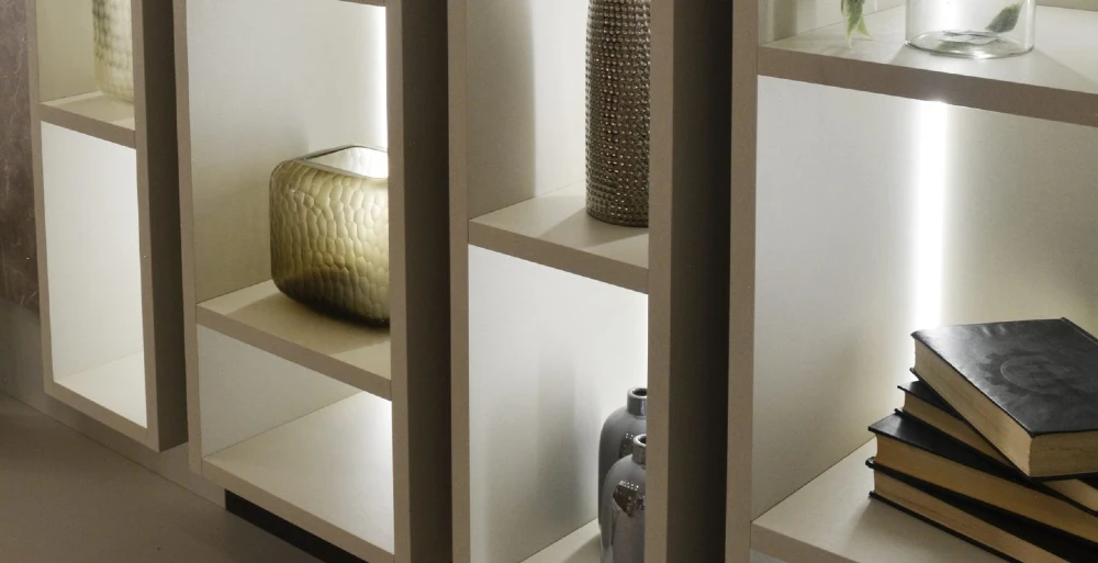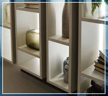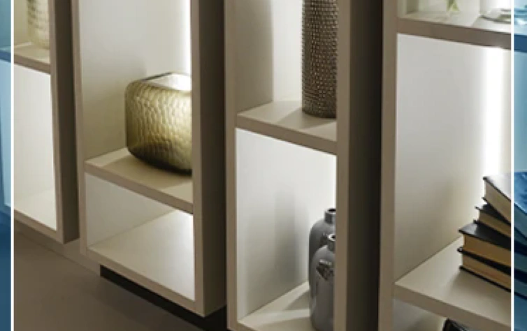 Agora, se você quer um ambiente com mais personalidade e menos formalidade, pode fazer como o exemplo abaixo: nichos com tamanhos diferentes e que utilizam decorações de diversos tamanhos. Esse estilo forma quase um box irregular, possibilitando versatilidade no decor. Essa estrutura abaixo faz parte de um home, projetado pela Italínea.