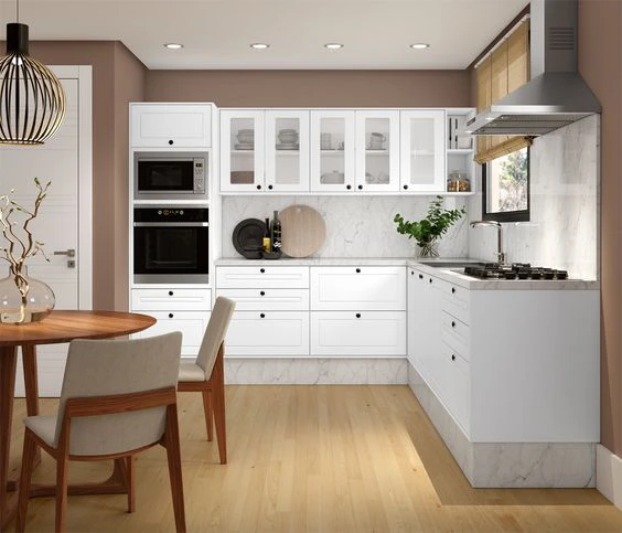 Em primeiro lugar, é fundamental não esquecer a função que a sua cozinha desempenha. Isso quer dizer que em áreas mais movimentadas, como pia, fogão e geladeira, o espaço deve ser suficiente para as pessoas acessarem e trabalharem confortavelmente. Nada deve bloquear o fluxo de trabalho, como as portas dos armários, por exemplo, quando estiverem abertas.